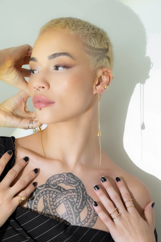 A base de nossas peças é composta por um blend de metais não nobres que passam por uma longa e minuciosa submersão em metais nobres como o ouro, ródio, platina, etc. O que pode diferenciar é a quantidade desse metal nobre, o que varia de acordo com o peso/tamanho das peças, atente-se as descrições de cada produto.