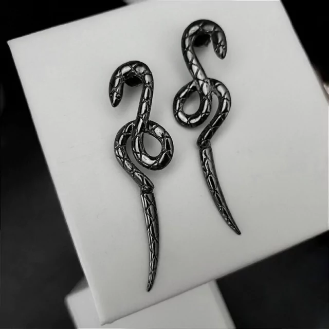 Semijoia par de brincos serpente com rabo flexível.