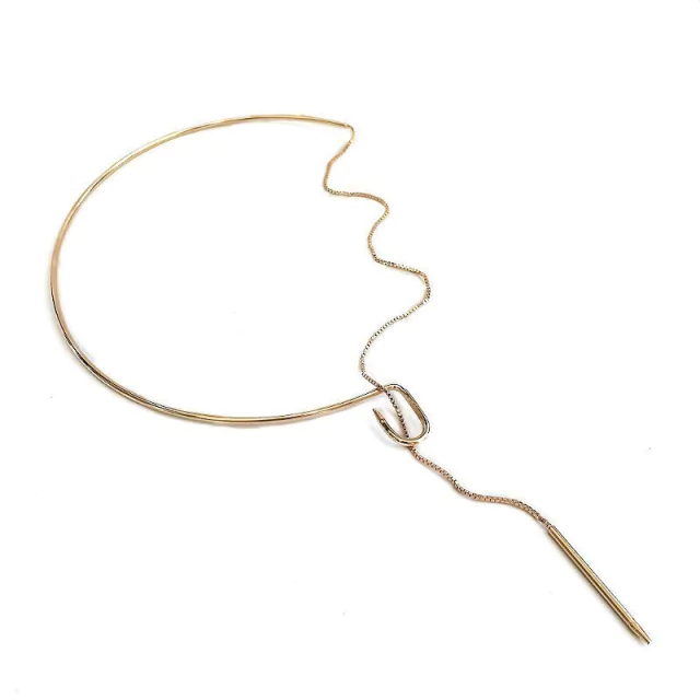 Gargantilha com design desigual, meio aro meio corrente veneziana.
